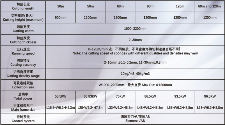 加工泡綿尺寸 | 長(zhǎng)度:49-100m,寬度:1-2.2m,高度1.3m |